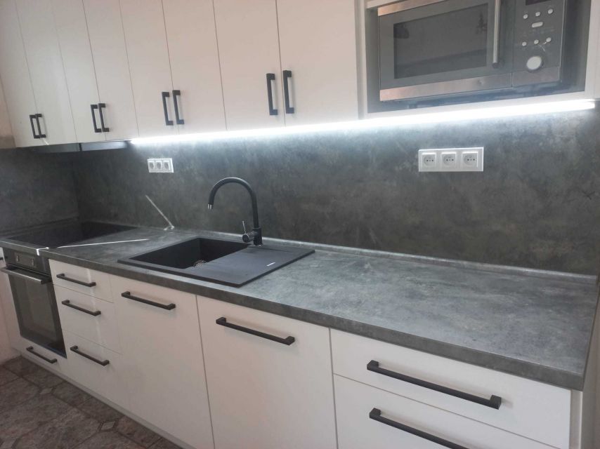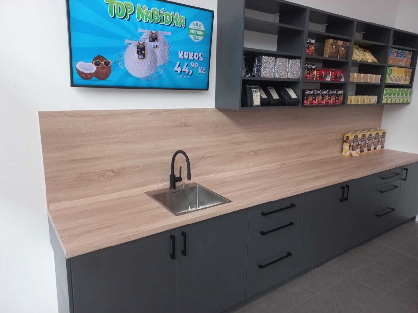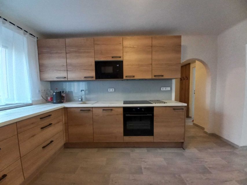 Celý proces výroby kuchyňské linky probíhá v naší dílně - přivezeme vám už zkolíkované a slepené korpusy, tím je zaručena vysoká kvalita a pevnost kuchyně.